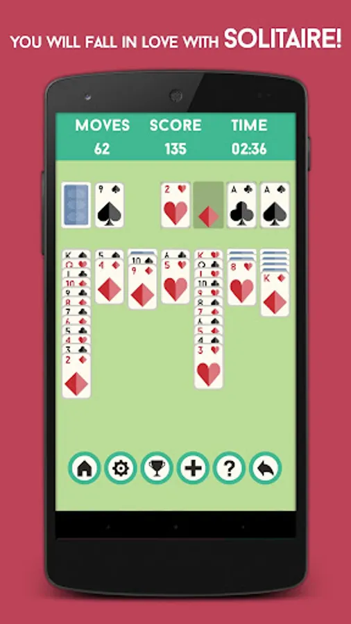 Thanks to the amazing graphics, colours and sounds included in "Solitaire Klondike" you'll spend hours playing in total relax, and you'll have just to concentrate on the best winning strategy!