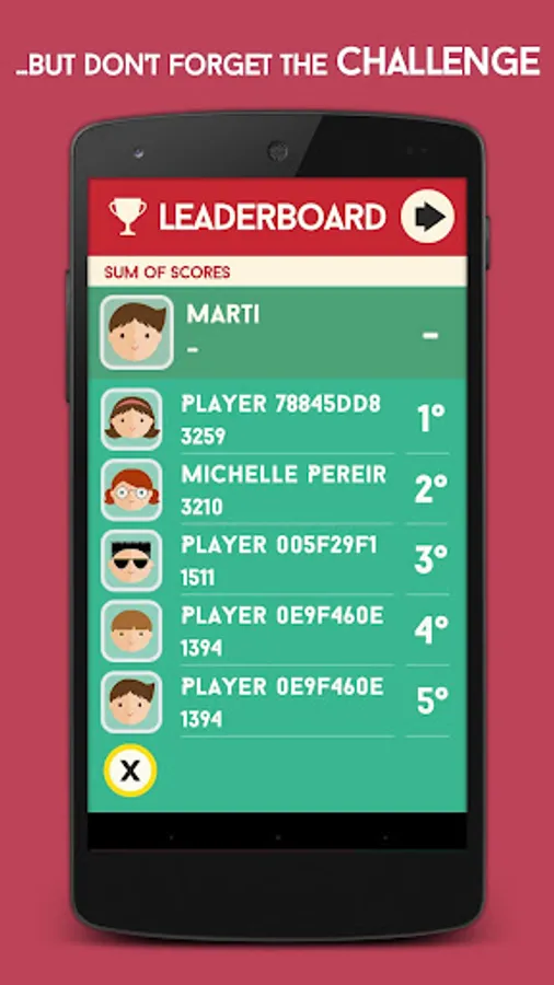 * Leaderboard (you'll choose your nickname and avatar, or you can just login with your Facebook account and never lose your scores!)