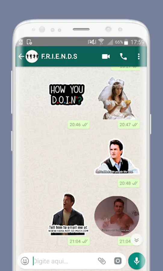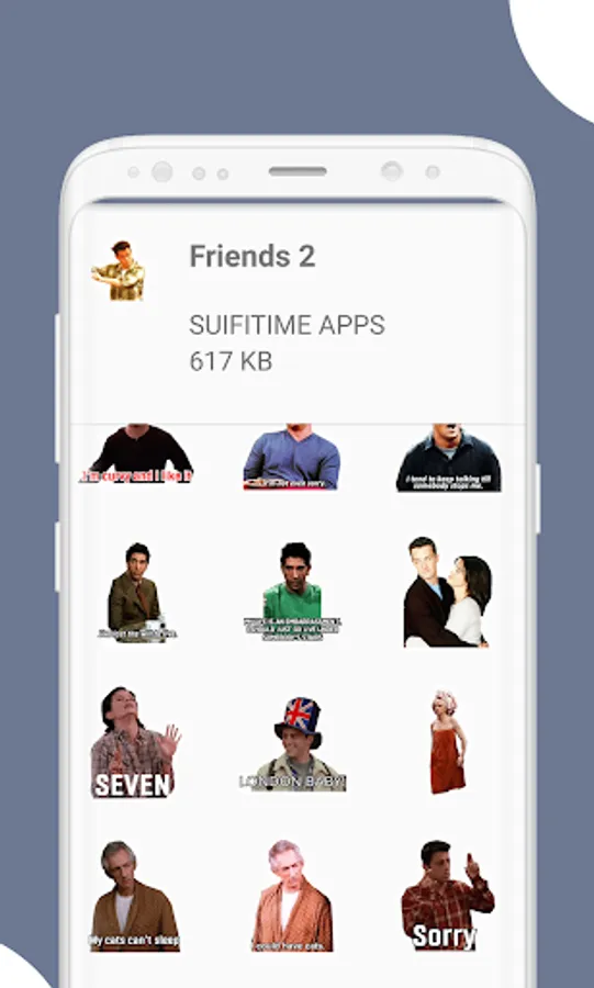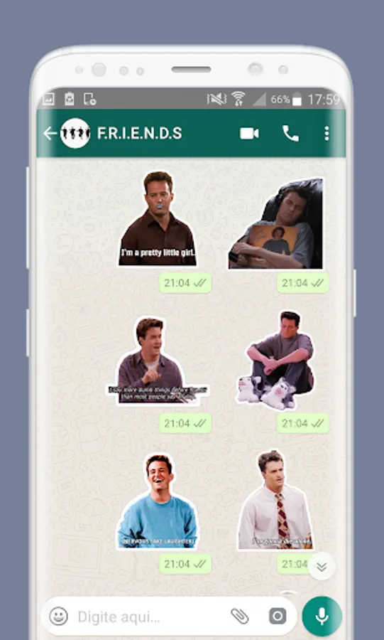 Stickers Friends - F.R.I.E.N.D.S has a package with over 200 stickers ready to add to your Whatsapp.