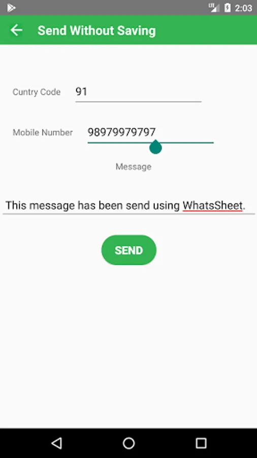 Send WhatsApp™ messages from google sheets. To use this feature users need to make one google sheet with the list of all numbers and massage of each number. Users can Send the WhatApp™ to those people from this app. The message for each number will be the same as the massage which will be added in that sheet for that number.