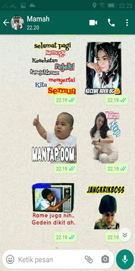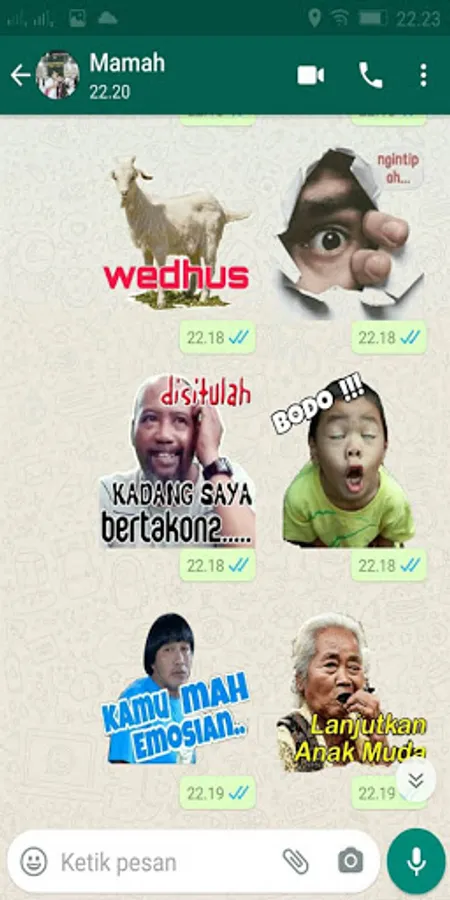 5. Open your WA application, then select the sticker menu. then you will find some of the stickers that you just downloaded on your chat application.
