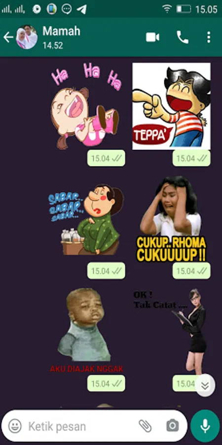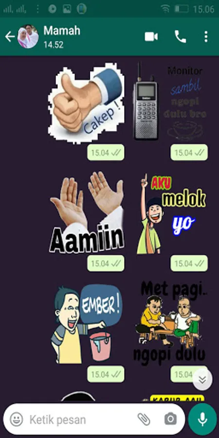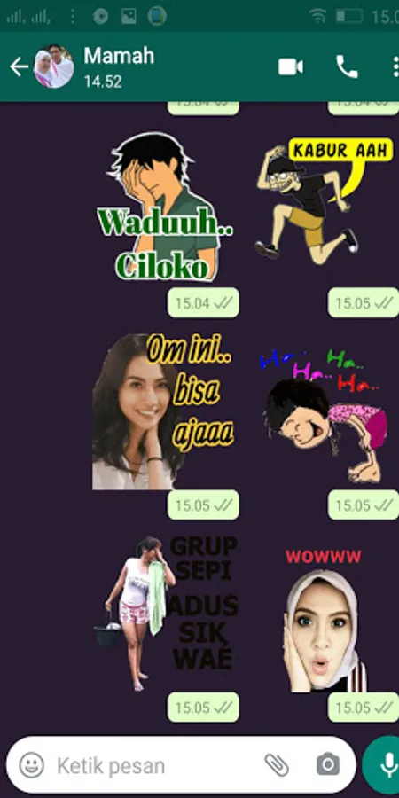 5. Open your WA application, then select the sticker menu. then you will find some stickers that you just downloaded in your chat application.