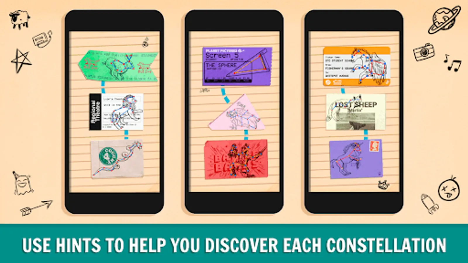 * Complete dot-to-dot constellations with the help of some hand-drawn hints