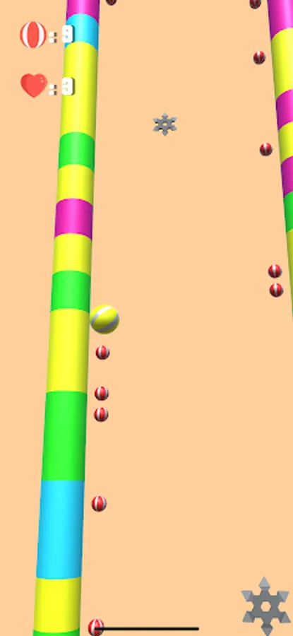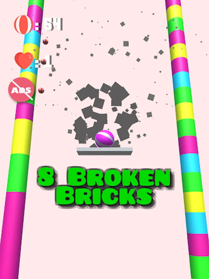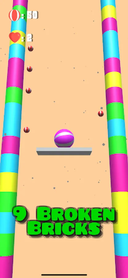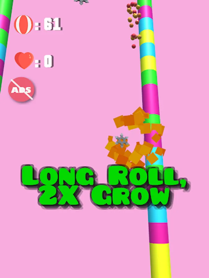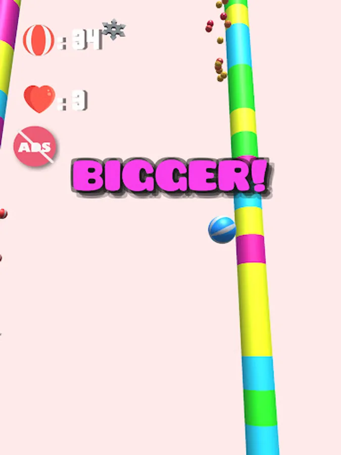 The more balls you collect, the bigger you get, and the more you grow, the more bricks you break at the end of the level! Sometimes you must slide back down the rollers to collect the balls you missed. If you can slide down for a long time, the balls you collect will double your growth.