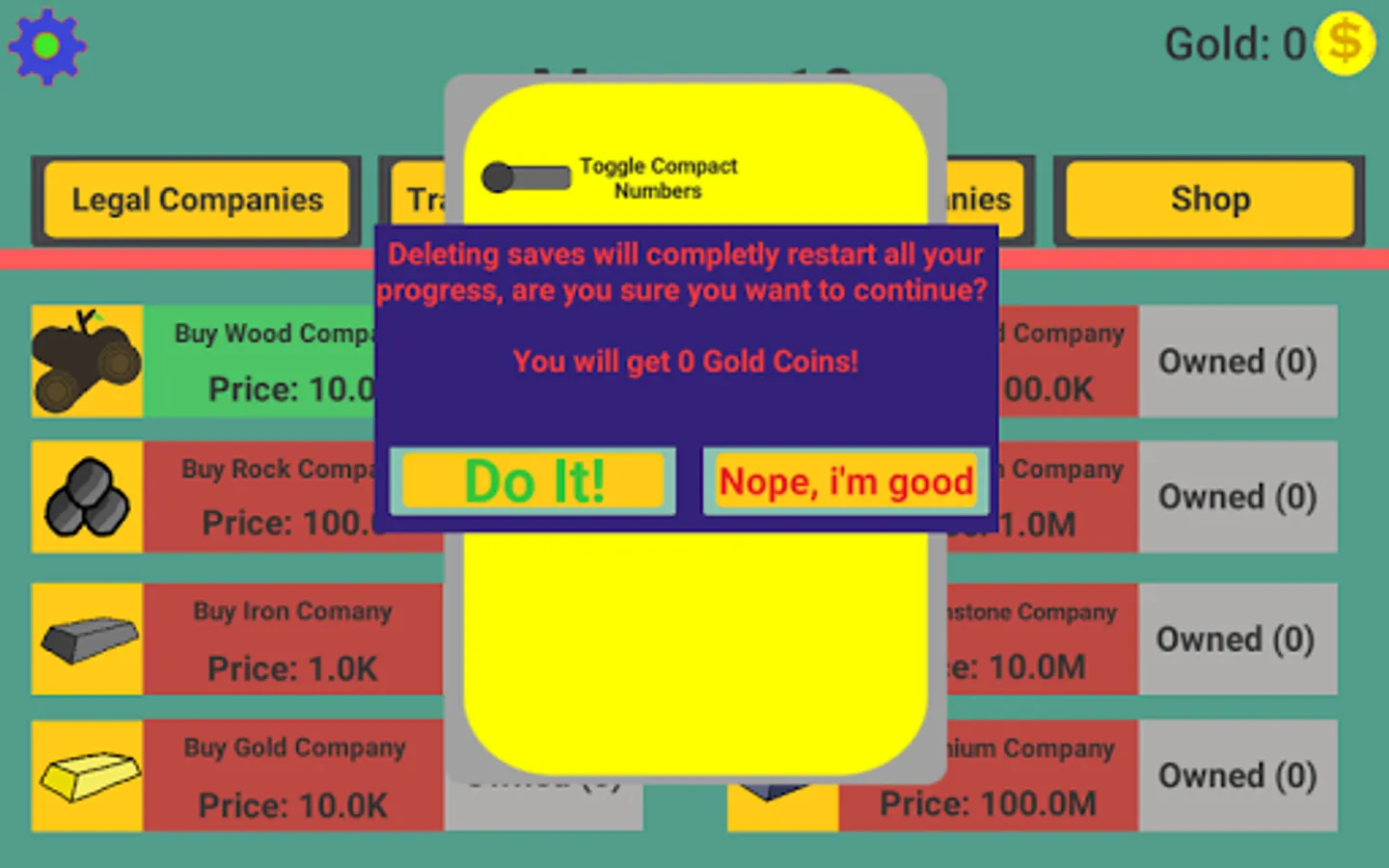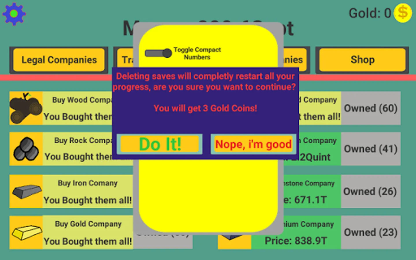 You have an option to reset all your progress if you want to get "gold coins" witch you can use to get 5 of any company regardless of price for 1 gold coin.