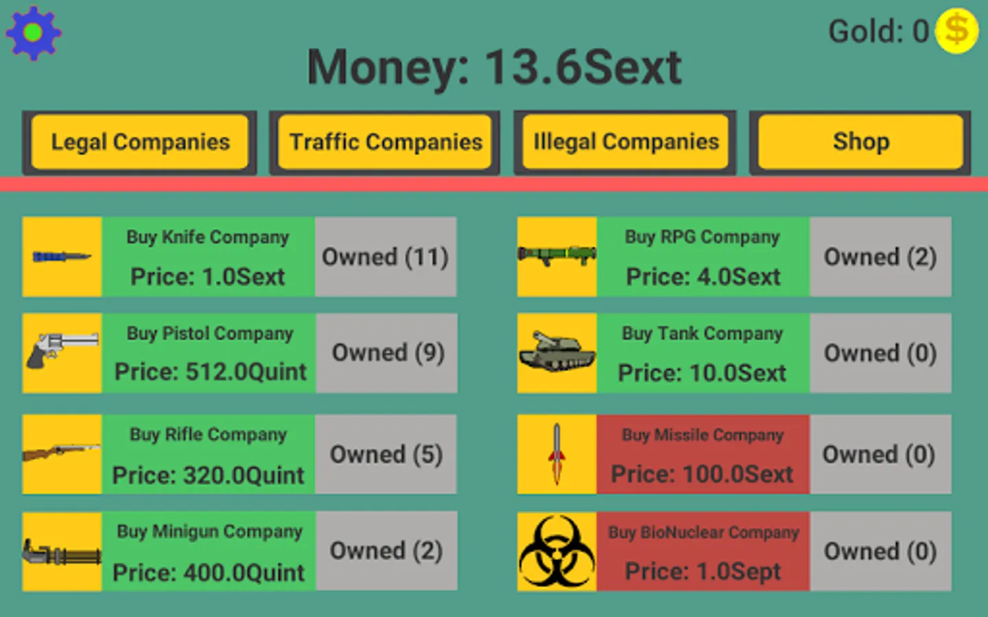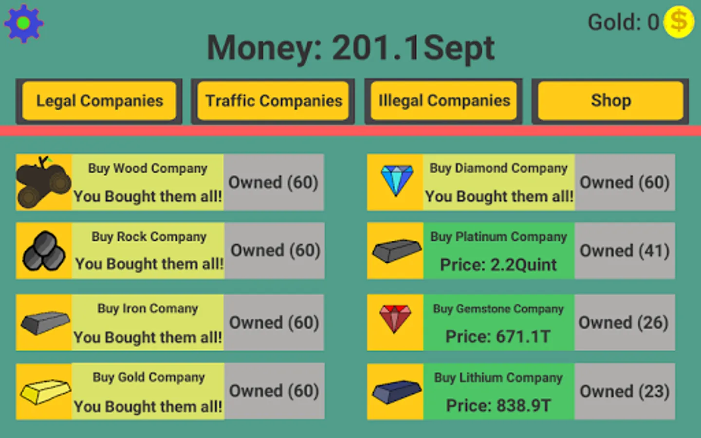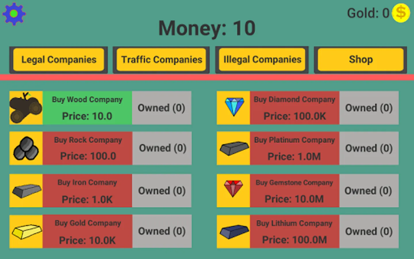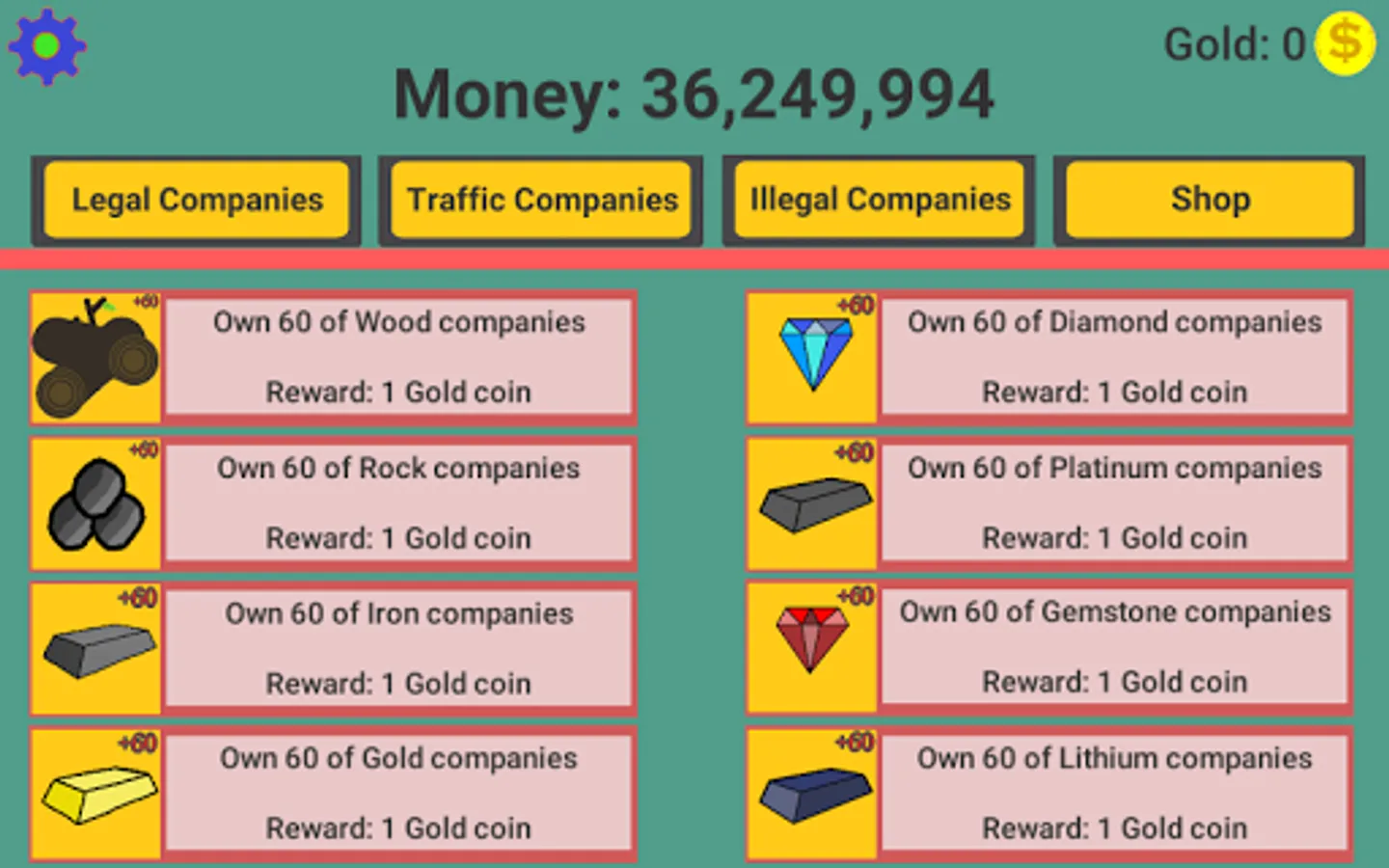 There are In-game achievements, complete the achievements to get gold coins so you can get more companies!