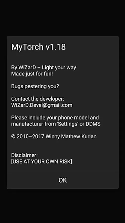 3. A new popup menu for use in full screen mode has been added. Long press the torch on/off button for the popup menu.