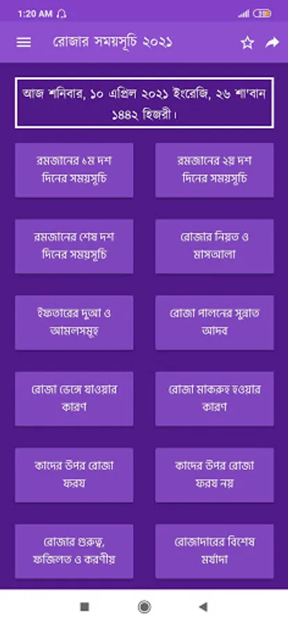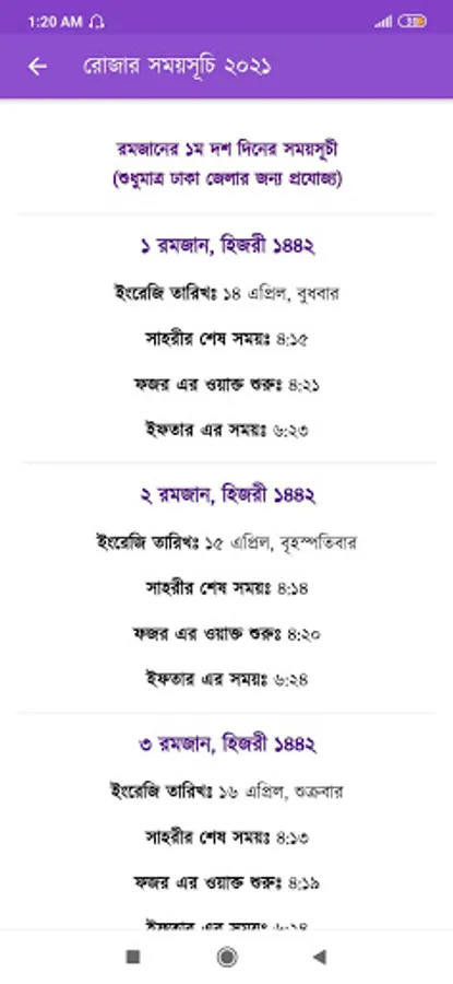 Ramadan is a special month of mercy, forgiveness and salvation. The Ramadan time schedule and calendar 2021 app gives the Ramadan schedule of all the districts of all the divisions. Seheri and Iftar schedules for the month of Ramadan 2021 are given in all the districts of Bangladesh with some important periods of the month of Ramadan.
