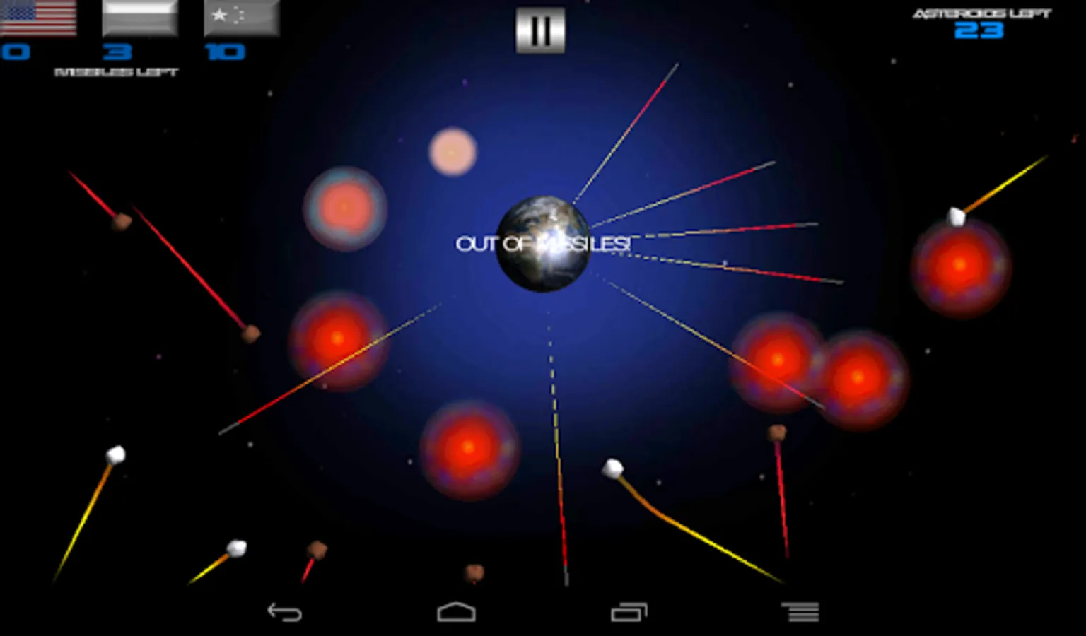 You have 3 different missiles to use. You have guided missile from USA. Fast speed and big explosion is trademark of Russian missile. Chinese missile creates black hole that will form event horizon that marks the point of no return for any hostile asteroids that come near.
