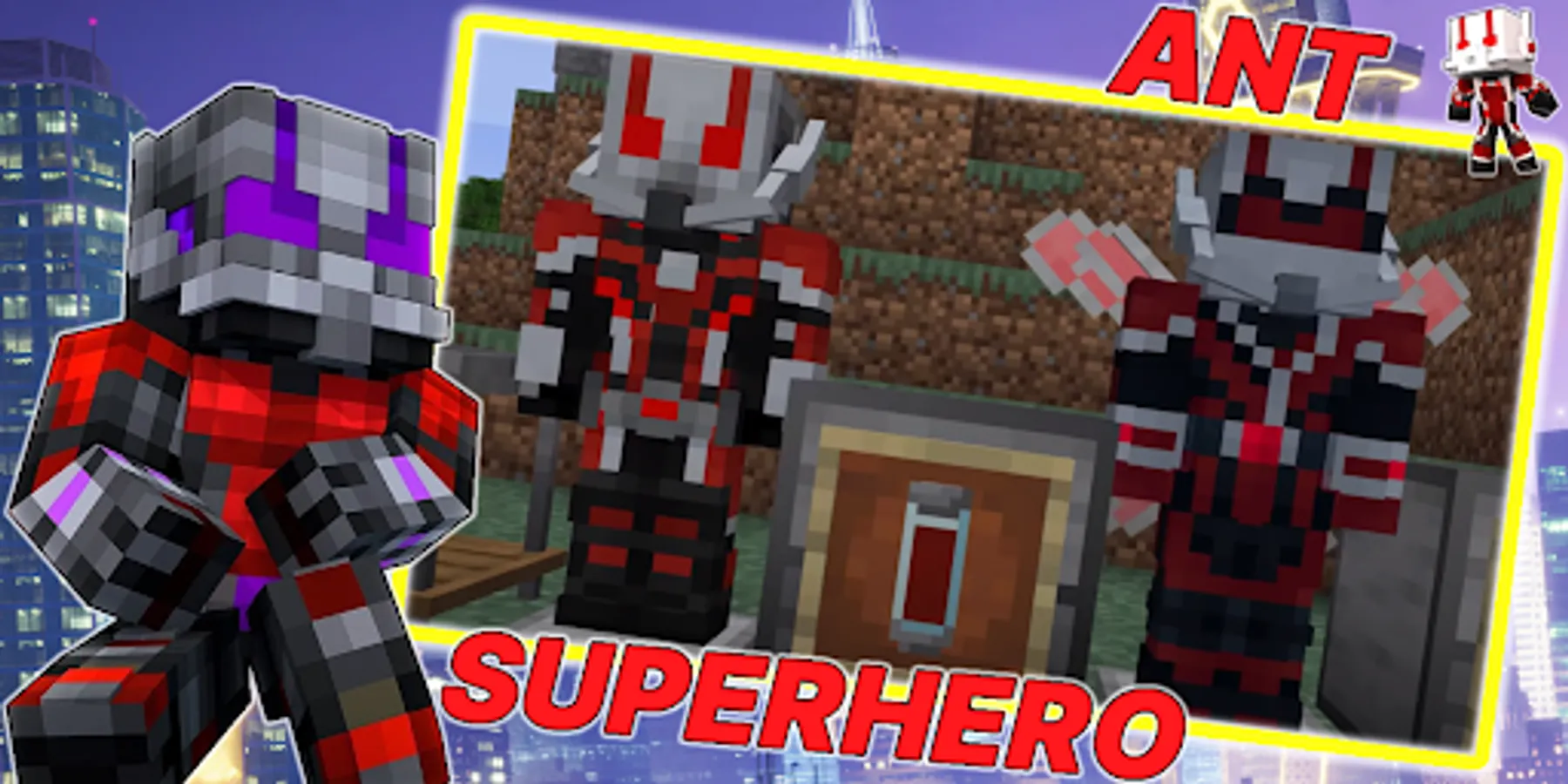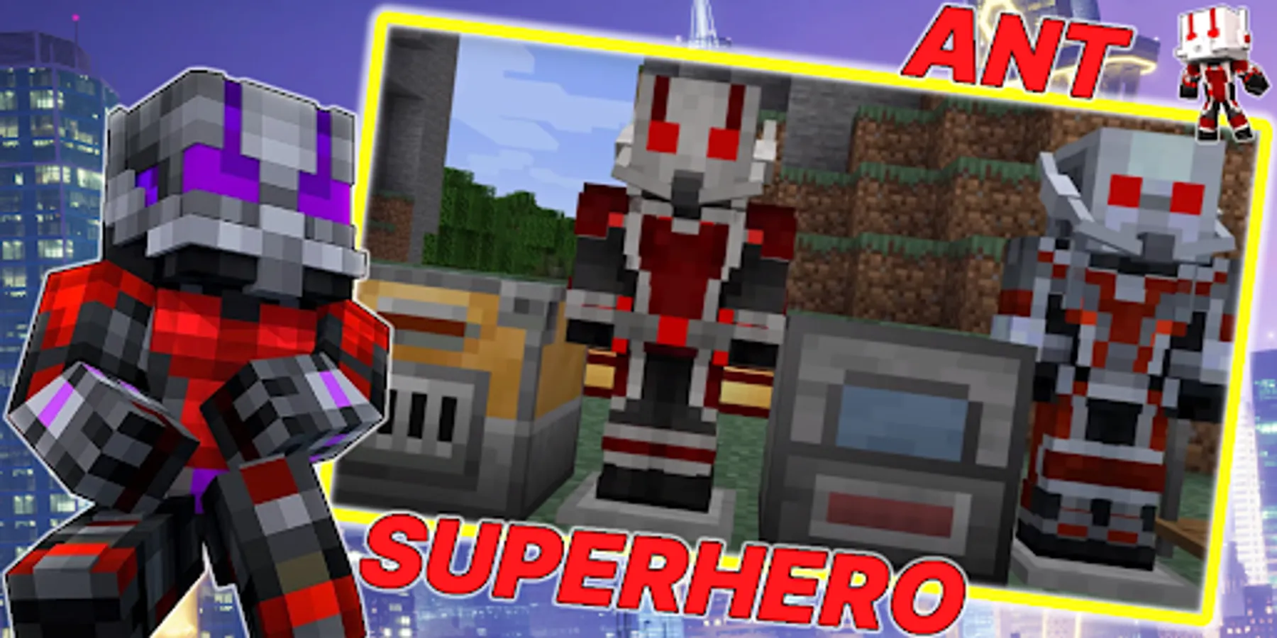 In one click, change your size, the uniqueness is that you do not lose your skin, you will still look the same, and you can still turn animals and monsters, along with a decrease, the creature will lose attack and health, the smaller the mob, the weaker and vice versa. You can change and make the hare the strongest in the game! You can fight the boss - the ant. But before you go into survival mode, get ready to craft yourself weapons and armor. Once you are ready you can increase your size and start the superhero ant battle. If you went on an adventure but can't find the boss, try to find him in the desert biome. He spawns as a creeper, an enderman and an ender dragon at night and makes people around him terrified. To become the most popular and strongest in the game, you will be able to penetrate into other people's houses, and if you wish, destroy any house with one blow like an explosion of dynamite. You can become as tiny as a zombie kid or even smaller than a block. Become the hero of your favorite movie superhero ant. This is a great addition if you have added too many scary monsters then it is best to turn yourself into tiny and play hide and seek with the creatures. If you increase to the maximum then you can fight Godzilla and Kong and still win! To step over the mountain with one step is real, but to see what will become available behind the clouds. Superhero abilities and magic immunity will be a nice bonus. If you have problems with survival on the map, become an ant man and craft a new colony. Anyone who can wear a craft ant-man costume will be able to use superhero functions and abilities that increase running speed and jump power.