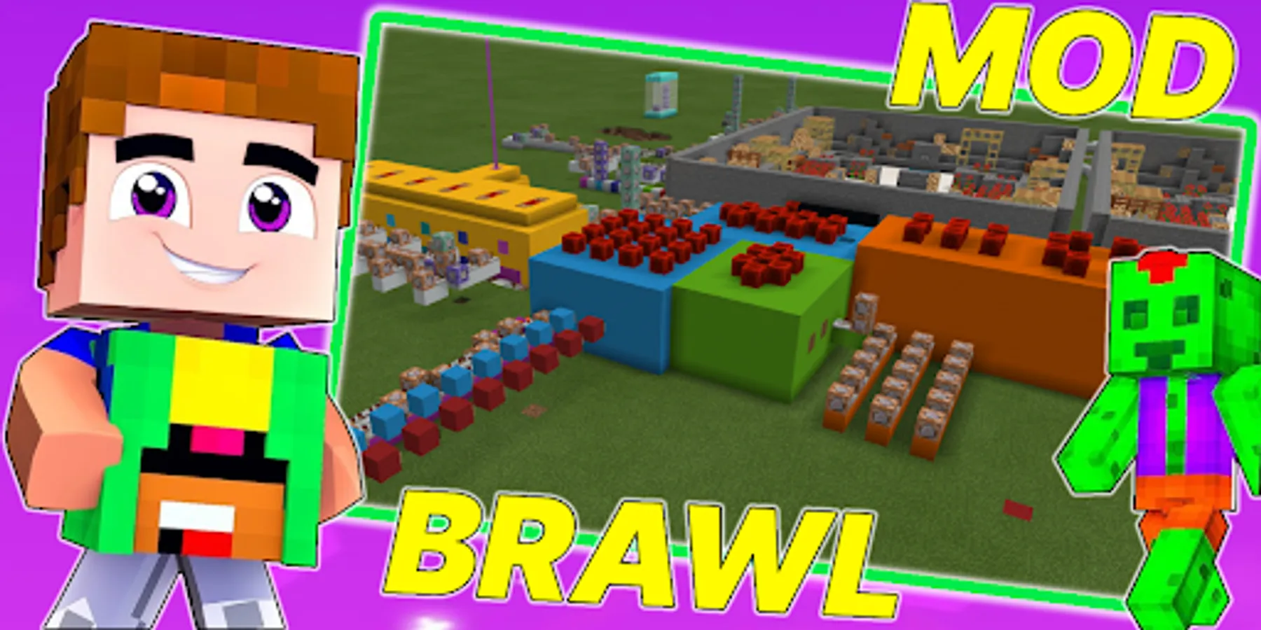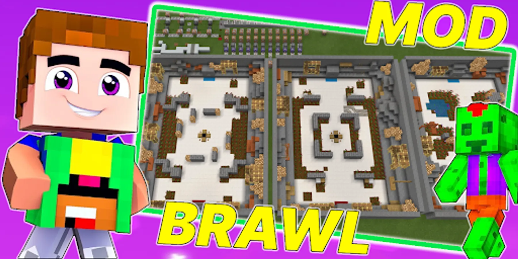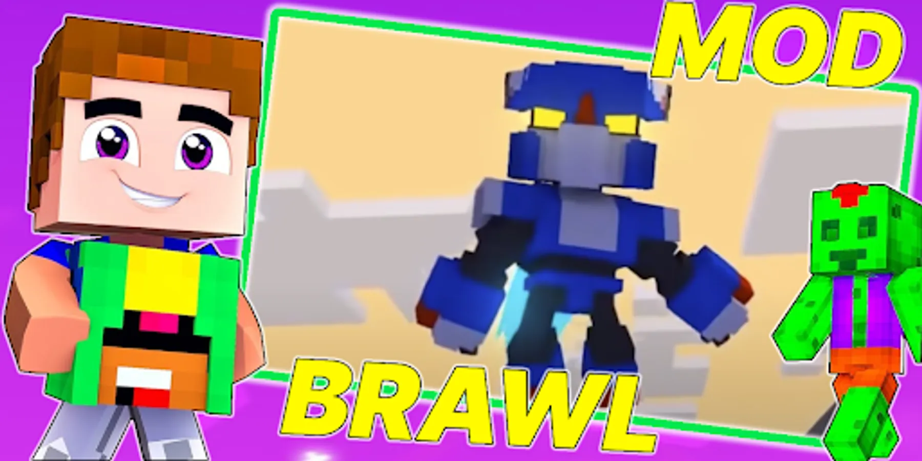 The add-on will add a whole map on which you can arrange infinity battles in the pocket edition. Enjoy cool hero skins and become a participant of the action battle royale, there will be only one winner! Each mob is a brawl stars to play with such creatures is dangerous but interesting. Explore the map along the way defeating champions and getting rewards from them. Before the battle begins, you can choose your set of weapons and armor. The first champion will receive the Brawl Stars Cup. To win, you need to become a parkour master, expert swordsman or archer and get diamond or enchanted armor with a huge amount of food. Rare, epic and legendary characters will become your opponents, if you start an online battle with your friends, the pixel world will become a real battlefield. The heroes of the popular game: Shelley, Nita, Colt, Bull, Jessie, Dynamike, Bo, 8-Bit, Brock - each of these monsters has a unique attack animation and new features. You will not be able to pvp your favorite fighters spawn randomly and attack as soon as they see you. You can choose the mode 3 on 3 or 1 on 1. Touch the button and you will receive a set of lucky blocks, it is this block that will lead you to the win. Both girls and boys will be able to become an art master of the sword and win. The game will turn from an adventure and chasing pixel blocks and resources into a real battle in which only one team can win. The map is full of obstacles like cubic cacti, traps and other objects that interfere with the player.
