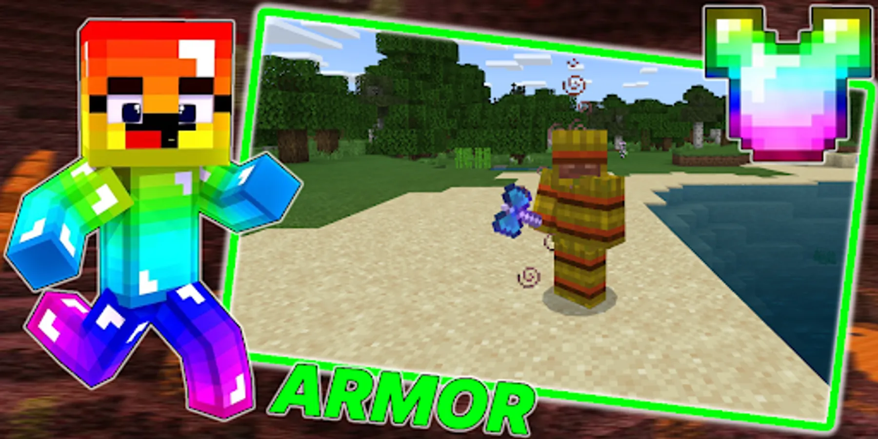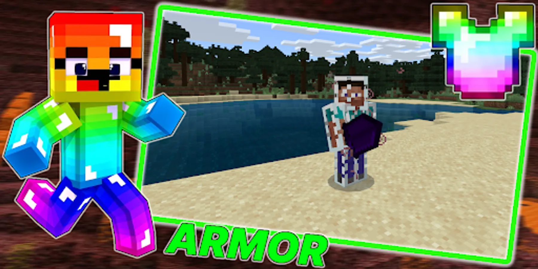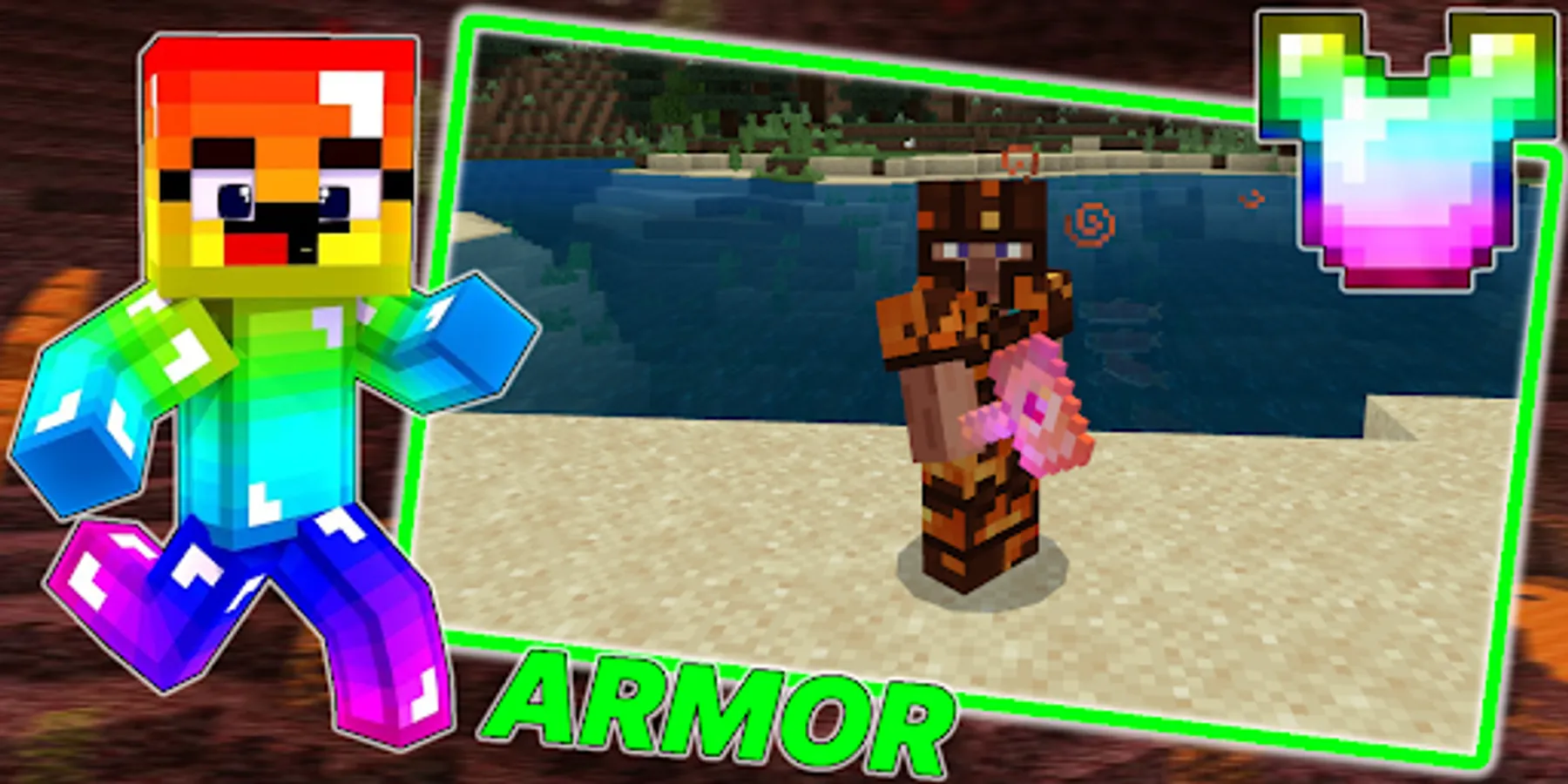 The addon will add new types of armor to the game. Various hostile and friendly creatures will appear already equipped with armor. Having put on such armor, your skin will be transformed and you will be able to hide in different biomes. New unusual types of armor, including: glass, earth, lava, water, netherite, diamond, gold, invisible and many others.