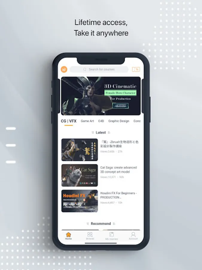 wingfox has 10 creative subject areas courses, they areCG | VFX, Game Art, C4D, grapic design, concept design, Animation, environment design, Film Production, industry design, potography,Whether you are a beginner or a practitioner, you can find a creative course that suits you in wingfox, so as to achieve your goals and create your own works of art