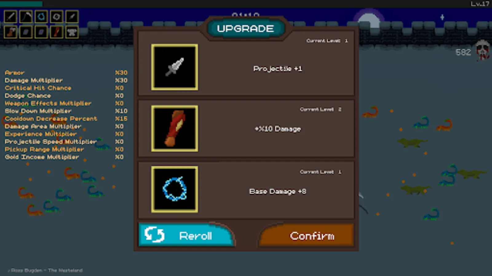 Draconian Survivors has a retro pixel art graphics.