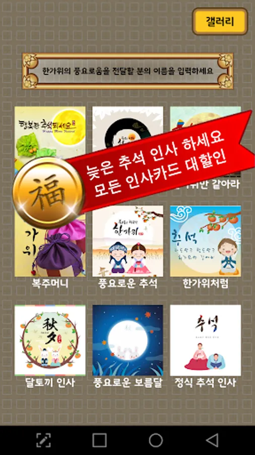 A discount will be provided so that you can say hello to late Chuseok. All greeting cards are discounted by 90% or more. Please use a lot