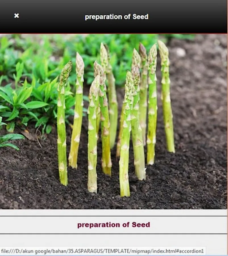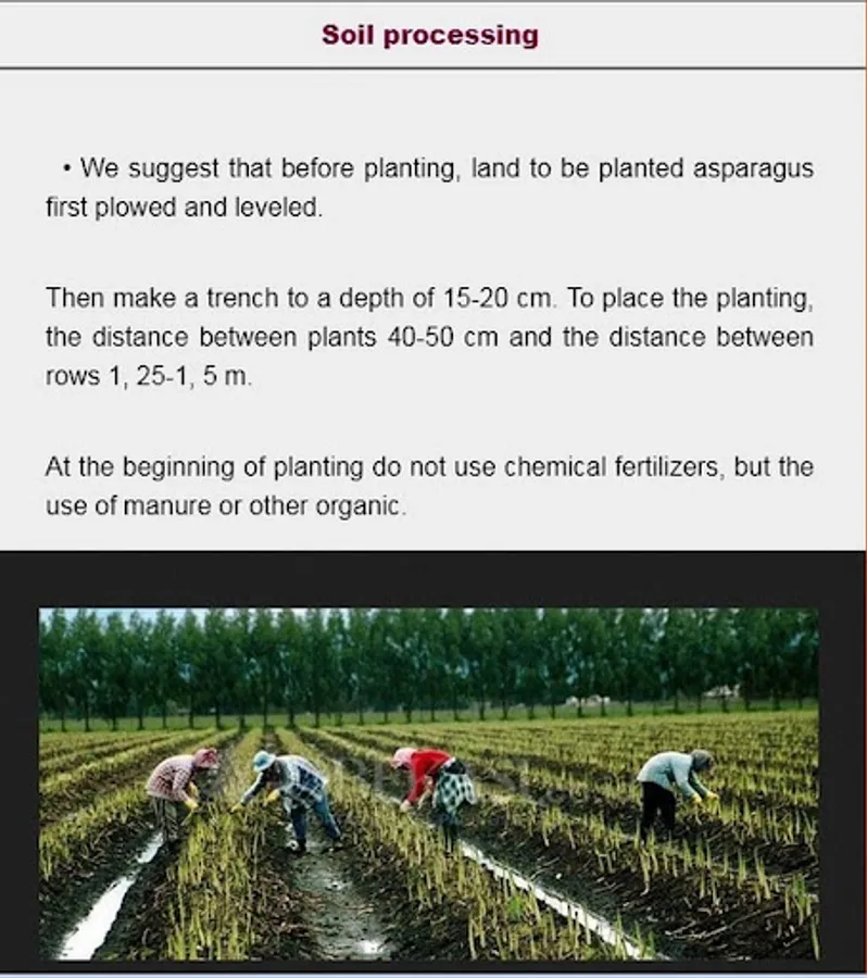 The steps of cultivation include: preparation of seeds, tillage, planting, maintenance, and harvesting. To facilitate you in doing asparagus cultivation business, immediately learn how in the application that I have provided, install the application and master the way. Thank you, GOOD SUCCESS.