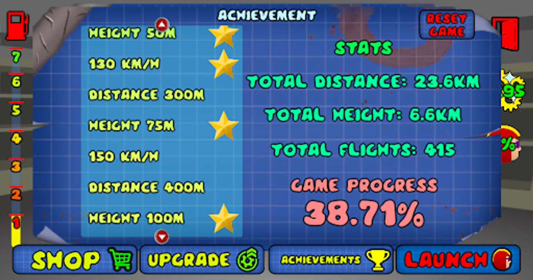 Reach 2,000m to finish the game and prestige.