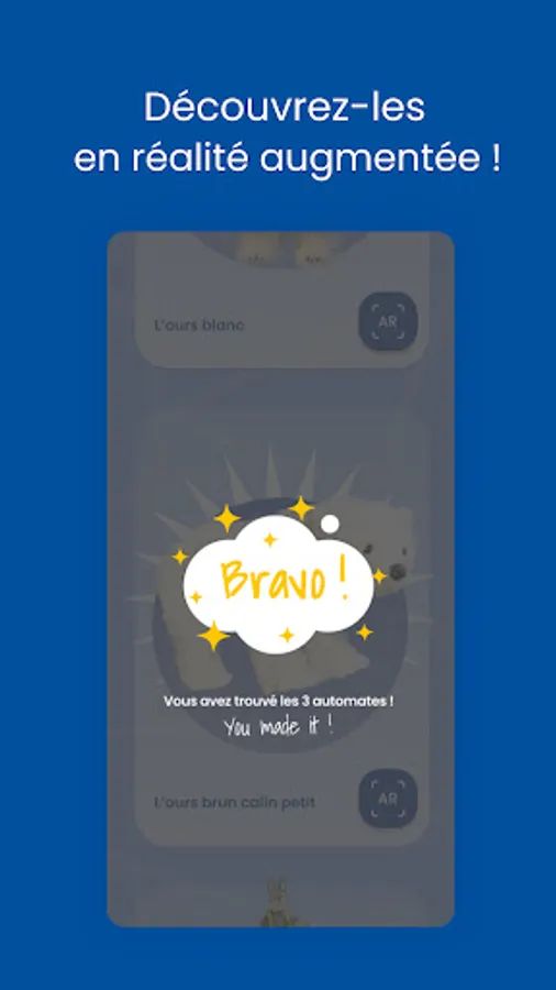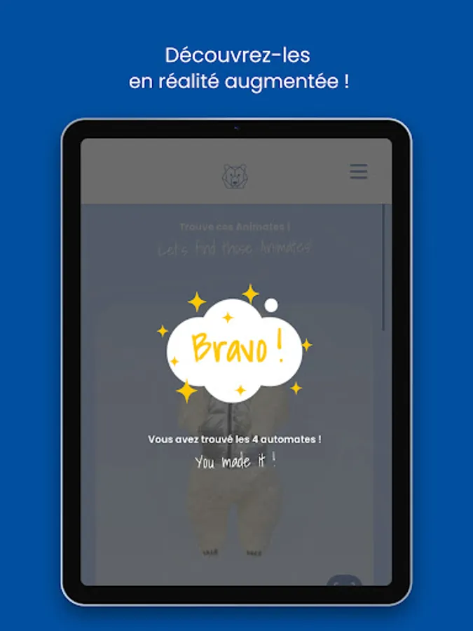 Launch the application, once the "Animates of L'Atelier Michel Taillis - The Animate Factory" in front of you, scan the markers placed at the bottom of the automatons and discover their environment in 3D in augmented reality on your smartphone.