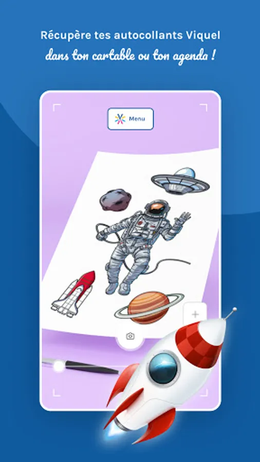 But these stickers are not ordinary! Scan them and bring them to life in augmented reality by downloading this app. Then watch the cosmonaut, the flamingo, the asteroid, the cactus and the others appear on your desktop in your phone or tablet!