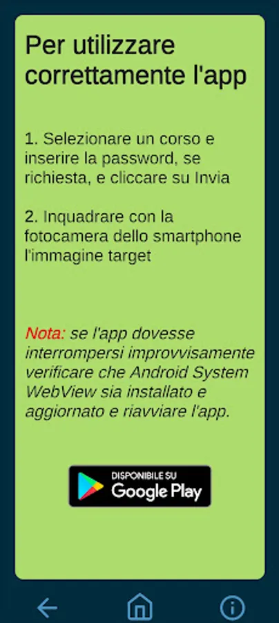If the course is set as private in the CMS then a password must be entered to enable the use of AR