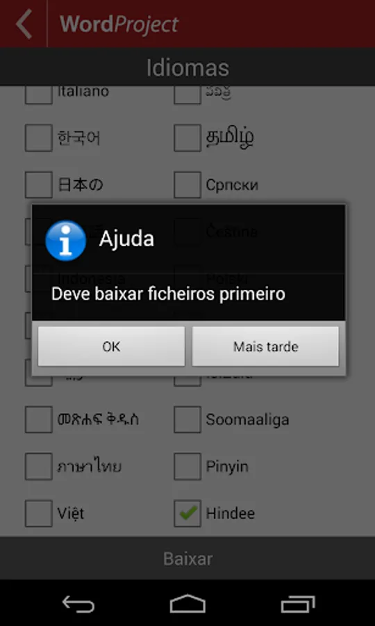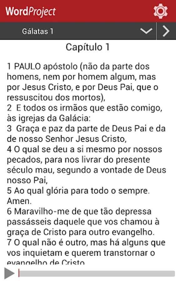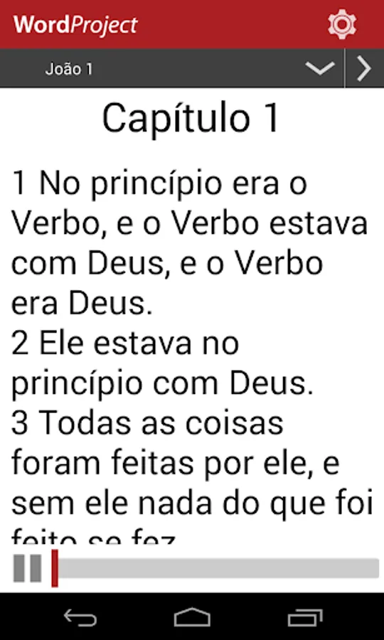 The application comes with the default in Portuguese and all other languages are easily and automatically installed with one click, according to the needs of the user. The text in any language takes 30 seconds or less to download and gets automatically installed, you just need to have your device connected through Wi-Fi or DATA. Audio chapters can be streamed, and heard in any language when you are connected to Wi-Fi or DATA, or may be download into your device for use offline anytime, anywhere.