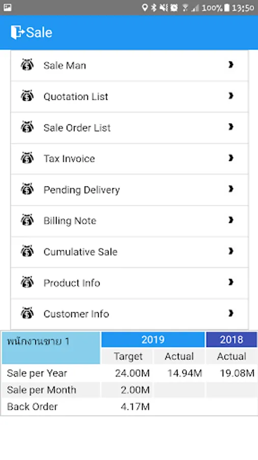 Sales management system To help employees know Status of the quotation, customer orders, products that are pending delivery, past sales, outstanding debt of each customer responsible for salespeople, product information, sales price and stock. Quickly