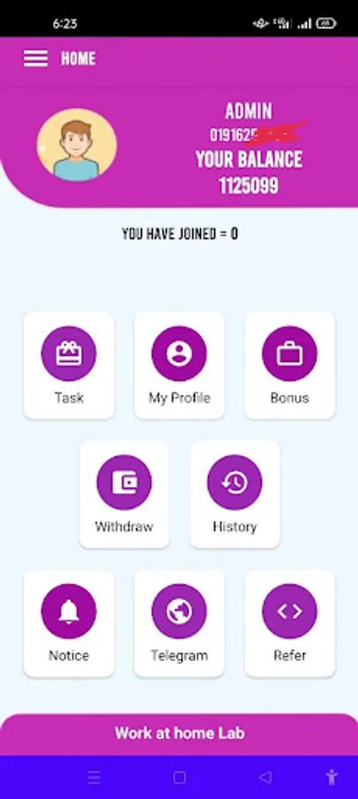 Work at home is a free mobile earning application play add Watch more core ads and earn money