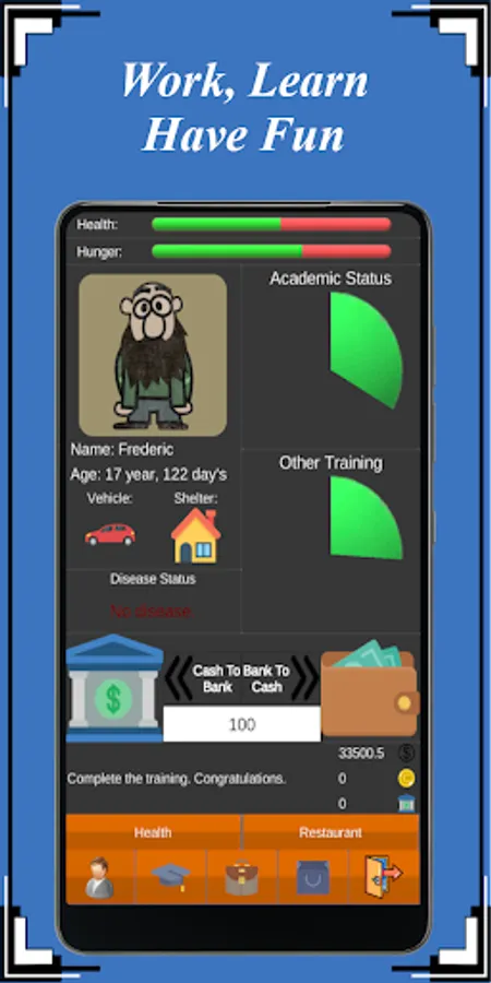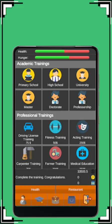 The game was designed as a small game in the vocational training. For example; To get a driver's license, you will be able to use a car for a while. If you succeed, you will have a driving license and you will do the tasks with the car.