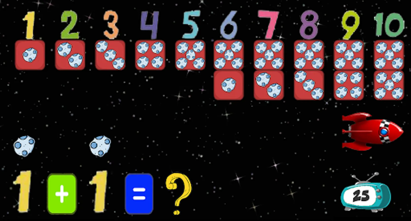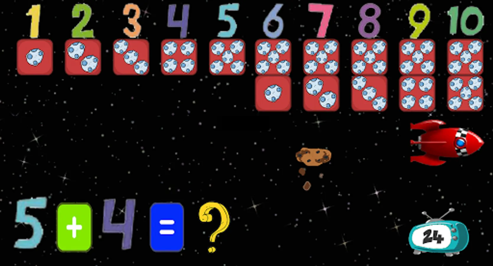 The game includes lots of visual cues to help learn the numbers and keep the child’s interest. Also, every 5 questions a surprise may appear. The final question also includes an exciting rocket chase scene.