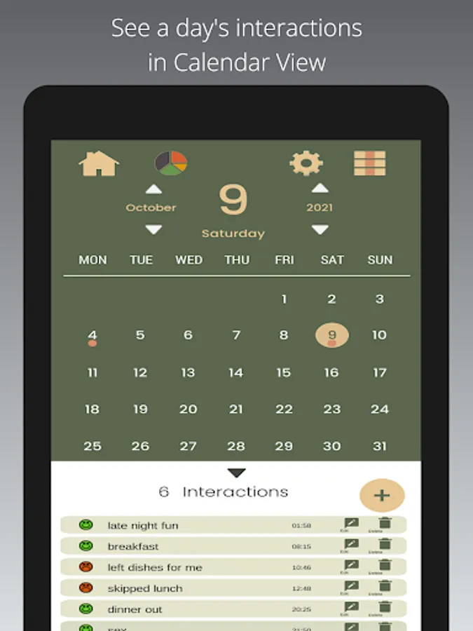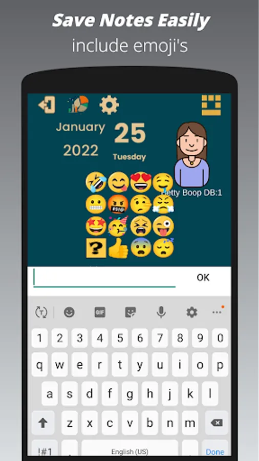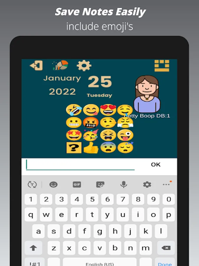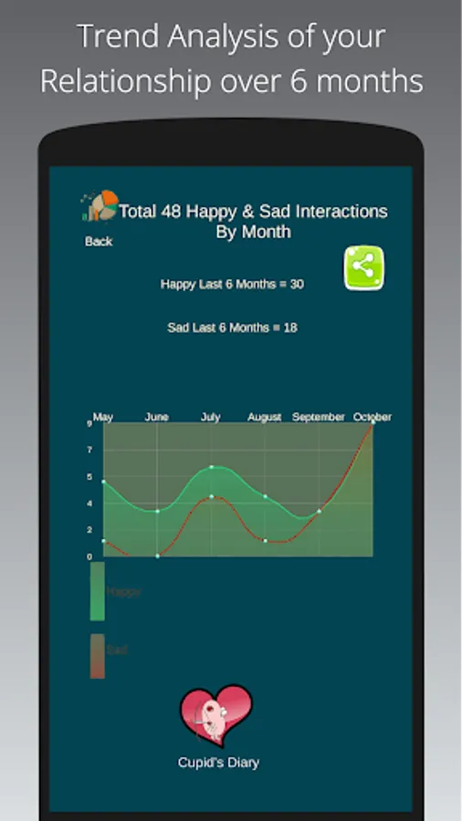 Keep it simple or more detailed. Use the Cupid’s diary to record and journal your mood with two simple clicks or add notes (short or long) and an emoji for fast reference, fun or categorization.