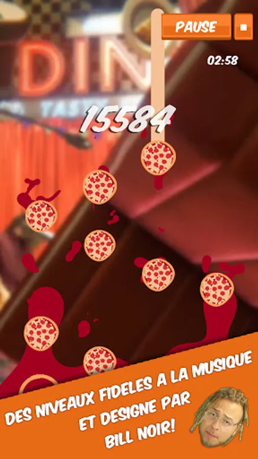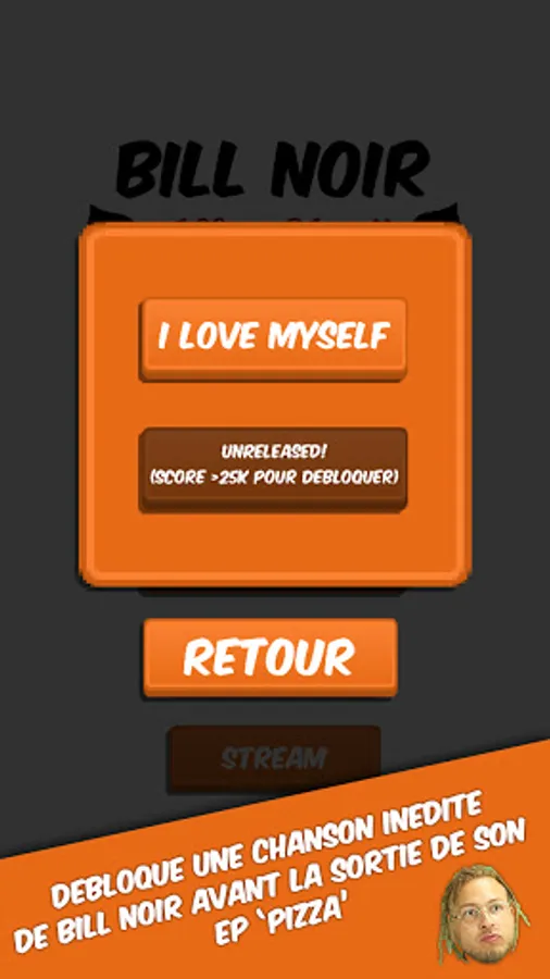 bill noir brings you this interactive musical experience in the style of "Guitar Hero". Hit the pizzas to the rhythm of her single "I LOVE MYSELF" and unlock a new song from her EP "PIZZA".