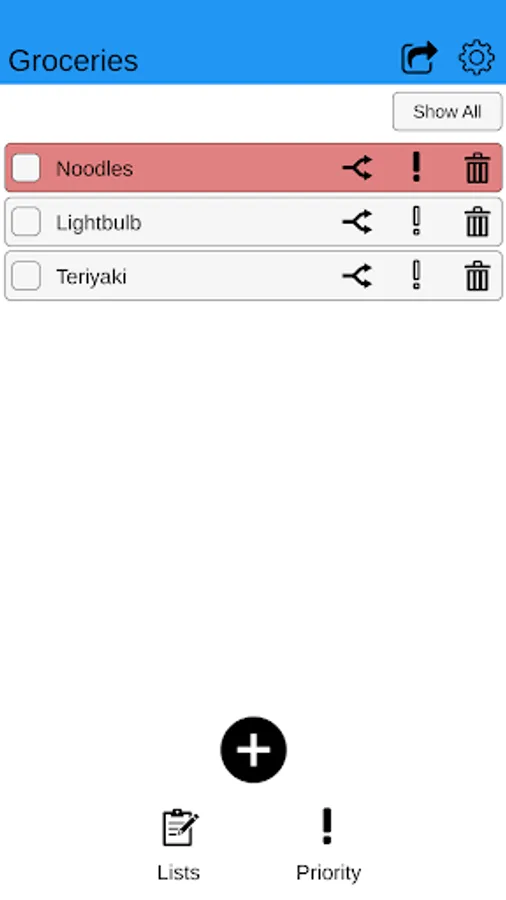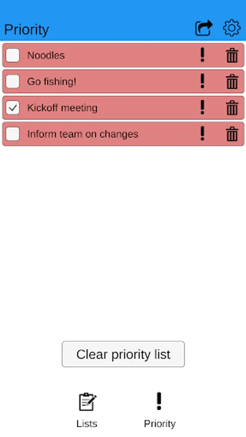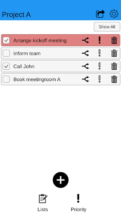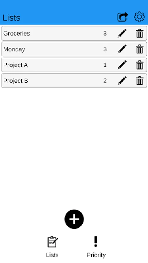 Your task-lists can be easily shared by mail or copied to clipboard for backup, and you can store up to 1000 lists with up to 1000 tasks per list.