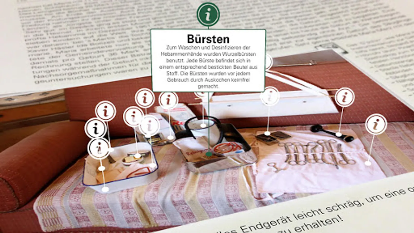 This augmented reality app which printed chronicle of the village Tannheim (Villingen-Schwenningen) is designed lively and modern. It can digital information, e.g. Movies, music, or 360 ° views are called in the otherwise static print product. Using Augmented Reality you will get access to information which would not be alone on paper. In interviews report Tannheimer citizens as witnesses of her childhood and youth and provide insight into their memories and events from the past. Historical film materials, music and interactive images provide a view into the past. The former Pauline monastery of Tannheim can be seen as an immersive and interactive 3D model to its former glory. The Augmented Reality Chronicle shows historically to changes in Tannheim and provides events and happenings is impressive. It is possible visual impressions and moods take that Tannheim still dominate. The advantage of this app is also in the ease of use for young and old. An exciting and novel reading experience is created.