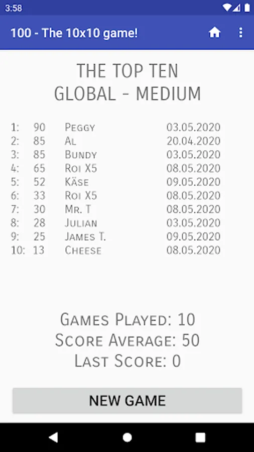 30 years ago (back then on a sheet of paper) it took me over 2 years to reach the maximum high score of 100!