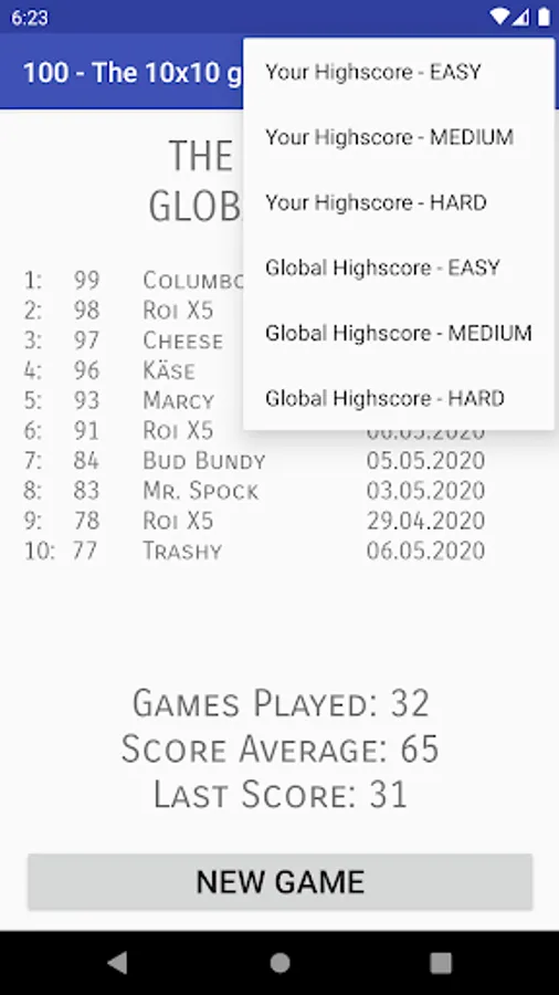 - High score