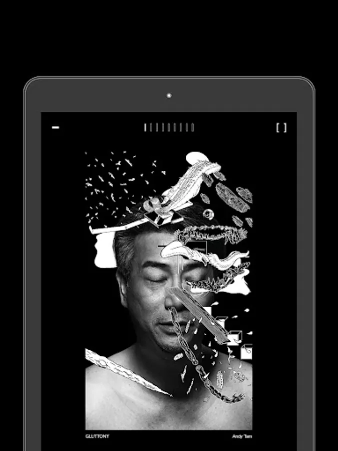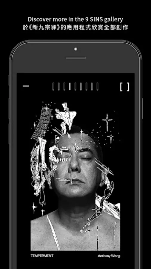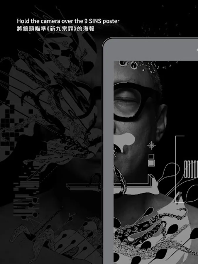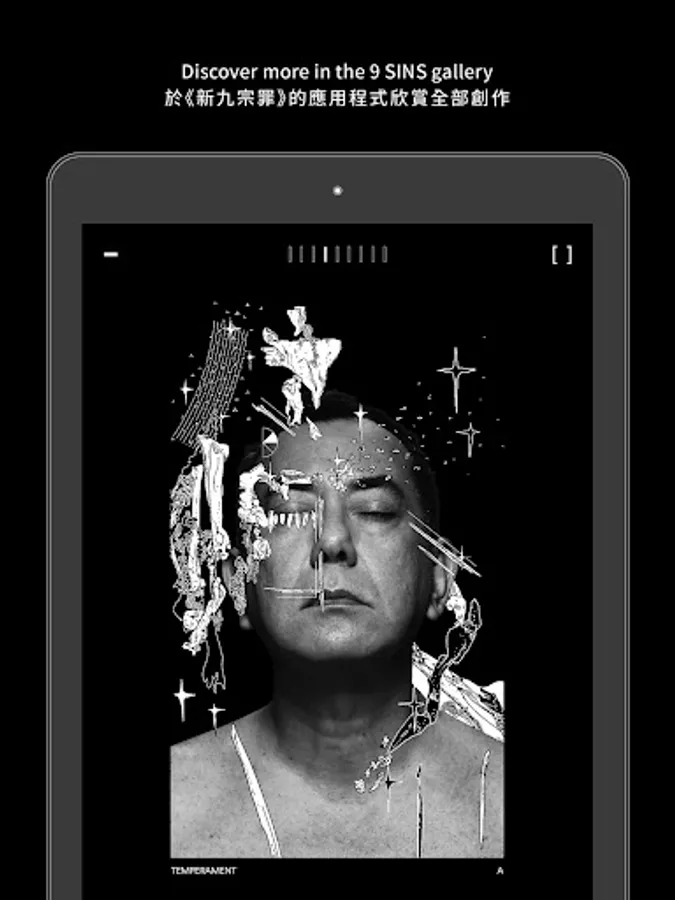Twenty years later, Tommy together with Li Chi Tak, Ringo Tang and XCEPT create a series of large-scale woodcut prints New 9 Sins on the same theme. Tommy invited 8 friends including Anthony Wong, MC Yan, Keith Lam, Peter Wong, Vincent Tsui, Abby Lai, Andy Tam and Ringo Tang to participate in the photo-taking. They become the subjects of the artworks accompanied by random illustrations and augmented reality effect, creating a more captivating visual. Visitors can enjoy the immersive and illusionistic effects of New 9 Sins by the use of the mobile application.