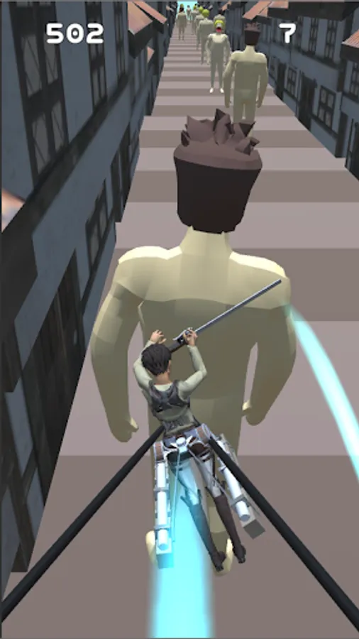 The titans are many, more of them keep coming and coming. The high tech rope gear enables your warrior hero to swing in the air among them and fly freely, to help him avoid getting eaten, and help him slash through their necks with the gears' blade !