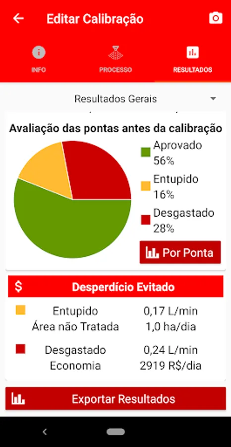 Able to check several nozzles informing if the flow is within the tolerance, below (cleaning) or above (replacement). Calculates l / ha estimate and coefficient of variation automatically generating graphs to assist in decision making.
