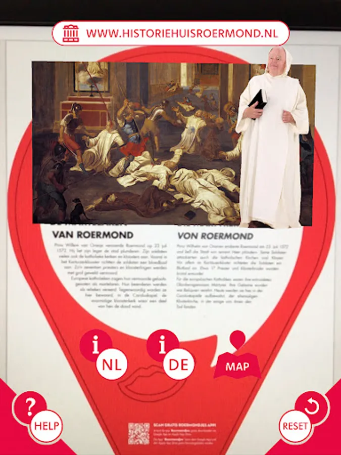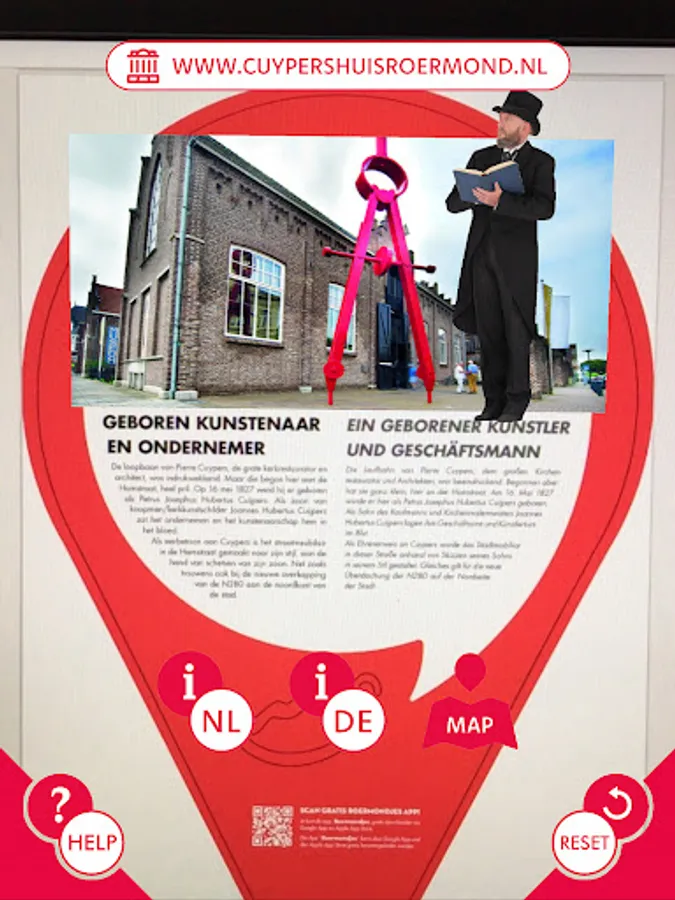 Point your phone at the Roermondjes icons and experience it too! Simply point your phone or tablet at the targets/signs marked with the Roermond icon that are scattered throughout Roermond. You will then receive additional information such as photos, 3D models or videos about city landmarks, museums or other services. Additional buttons appear on each target to provide more in-depth information in the language of your choice. If you quickly switch between targets, the 'reset' button can be useful to recognize the new experience more quickly. Press the 'Help' button on the screen if you need more help using the app. Enjoy the augmented reality experience in Roermond!