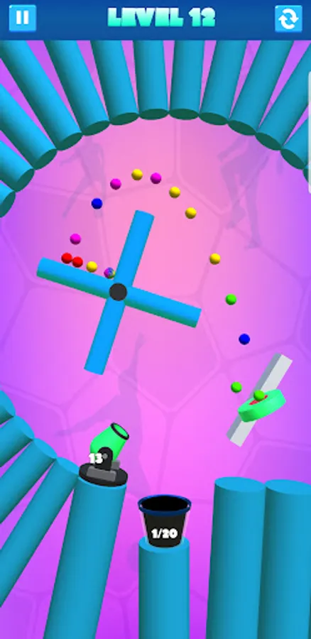 - Use your finger to move various objects to change the direction of the balls you shoot.