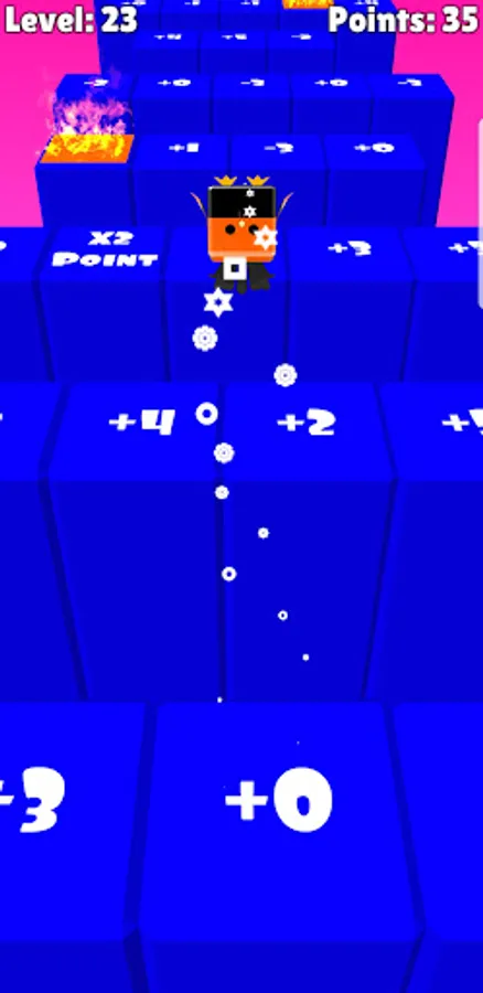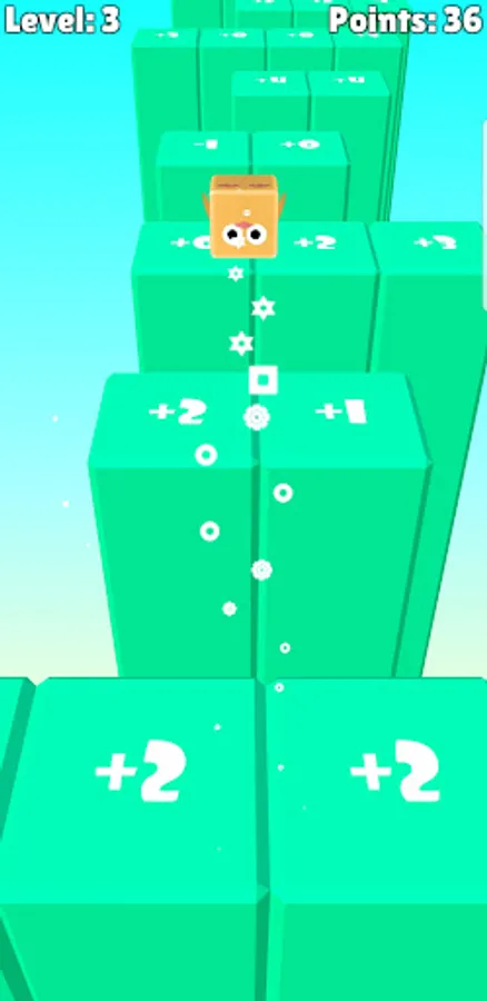 In this game, you try to jump on the positive platform to increase your points, avoid negative platform, trap and deadly obstacles. At the end, player will hop on a tank, and you will use the points you collect to unlock fire rate, fire power and other stats of the tank to shoot down the walls and complete the level.