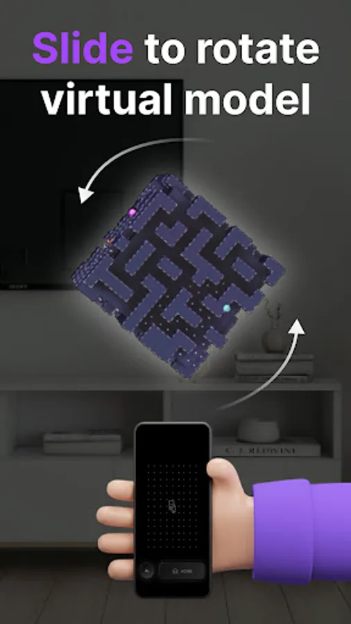 Tilt or slide to rotate the model, and to get the ball to the destination.