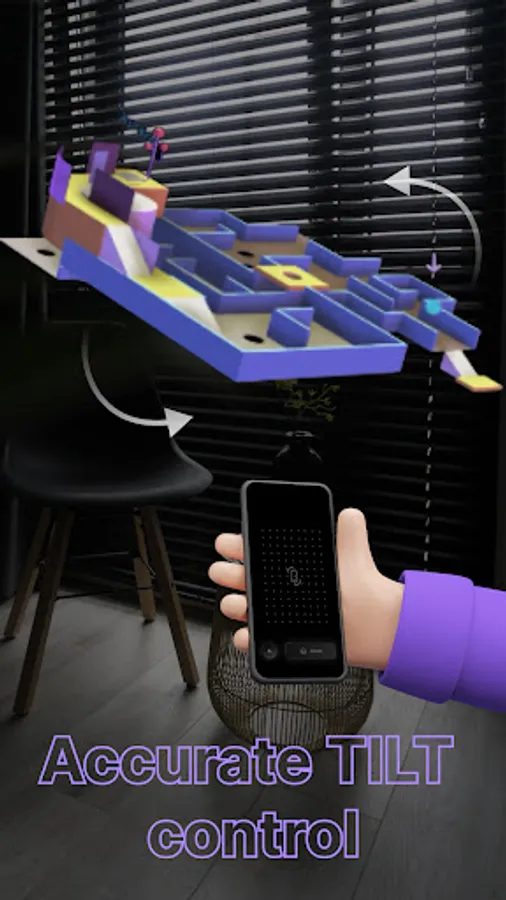 Maze is an Augmented Reality App that uses accurate tilt and slide control in existence—eating coins and gems, avoiding holes and obstacles, crossing tracks and slopes along the way.