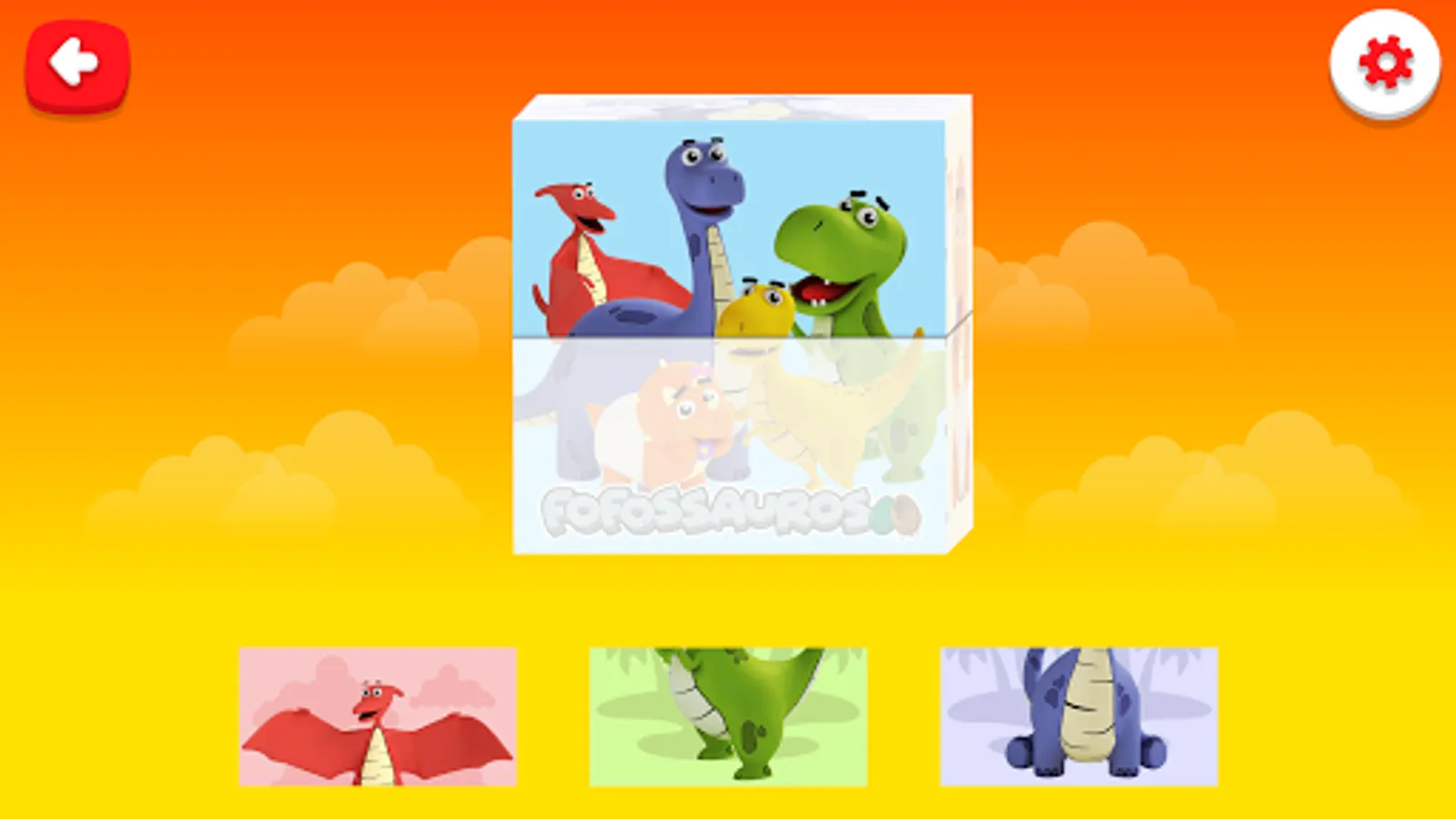 Have fun in another game of the Fofossauros! In the “Cubosa Puzzles Puzzles” you need to fit the correct pieces in the cube to meet each of our cute dinosaur friends. Let's start?