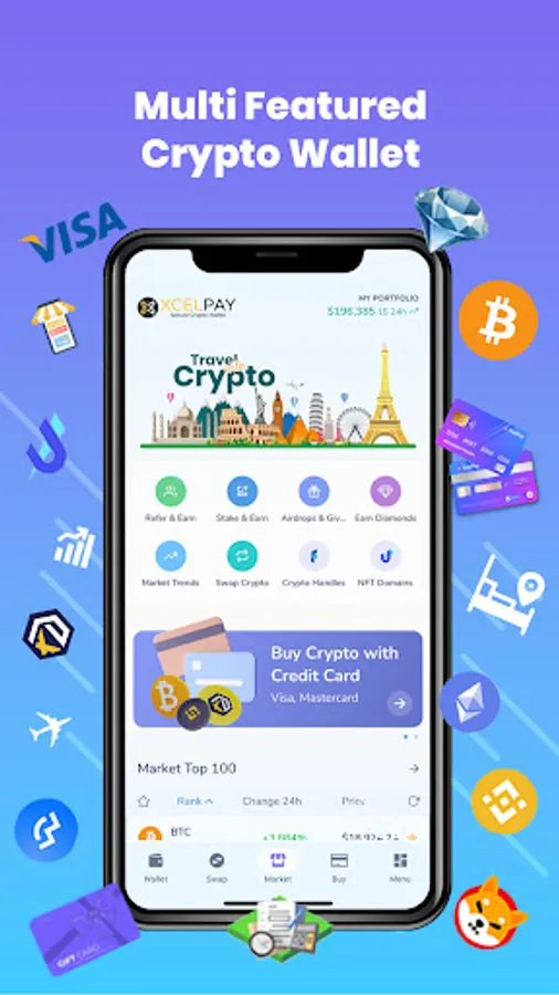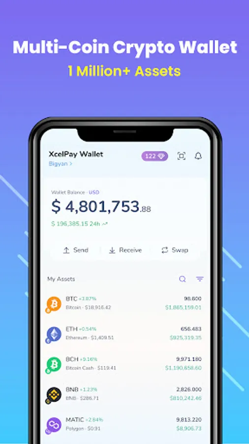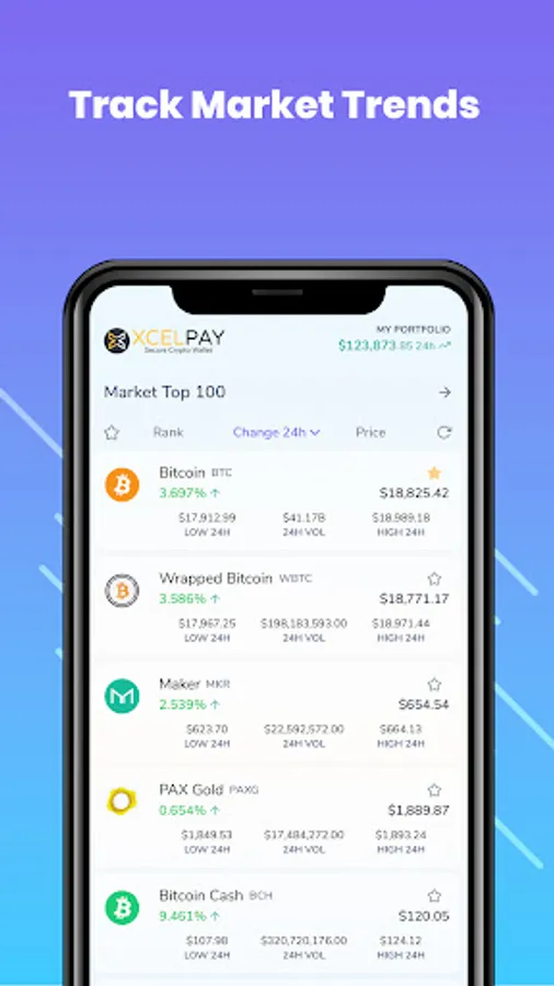Install the XcelPay Wallet to make secure transactions and keep your Bitcoin and other assets safe. Monitor the price of BTC, ETH and other coins.
