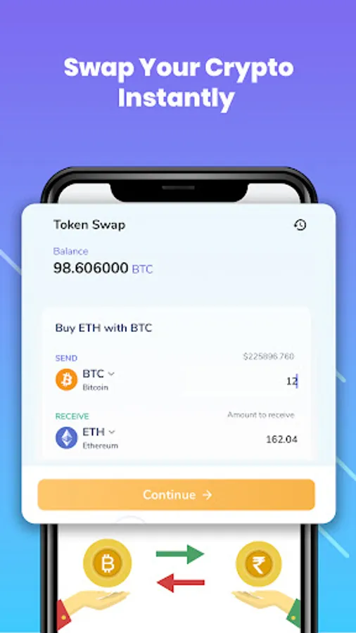 Without having to go through centralized exchanges, you can buy and sell one digital asset for another. With just a few taps, you can exchange cryptocurrencies from the comfort of your wallet while retaining privacy and control and you retain control over your private keys.