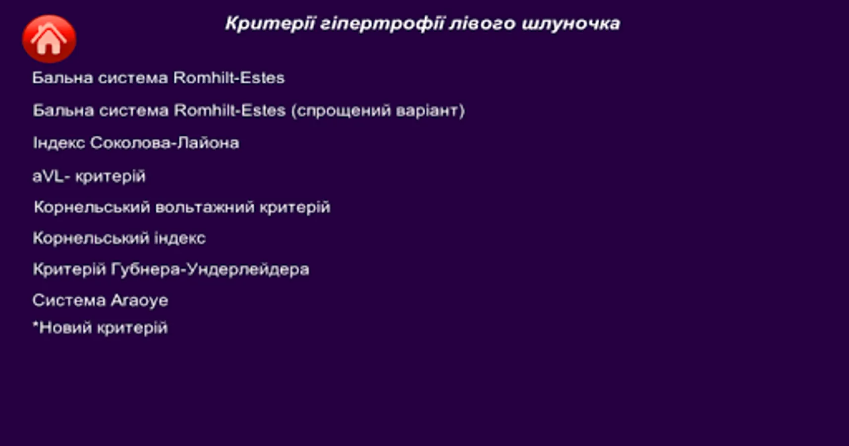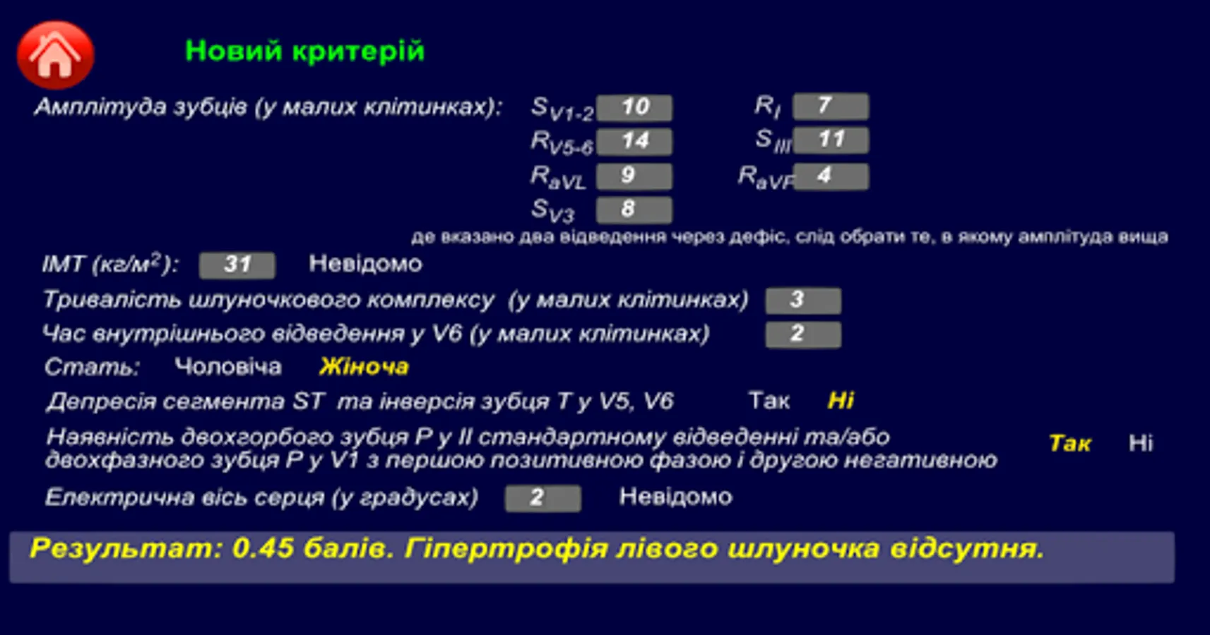 The program can detect left ventricular hypertrophy using electrocardiographic criteria. It is adapted to the different calibration and ECG recording speed, which allows no extra payments detect LVH as with several classic criteria and using the integrated test.
