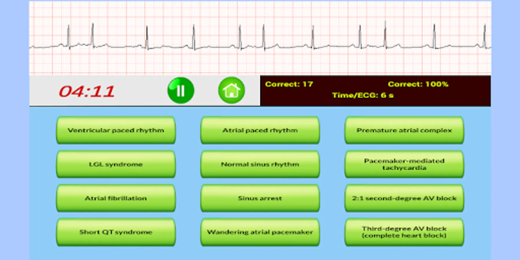 ECG Rhythm Quiz is an unique app, that can help you to recognize the most common ECG rhythms. Now learning ECG is not only easy but also fun. Identify the largest number of ECGs and compete with your friends!