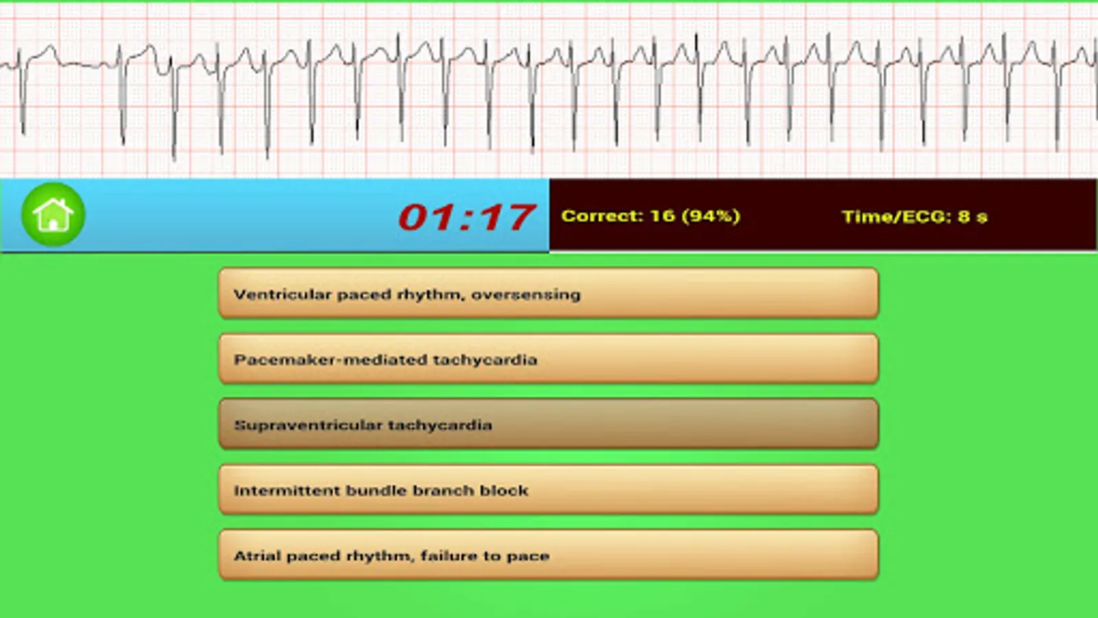 ECG Rhythm is an app allowing to check your skills in the ECG rhythm recognition. You can significantly improve your skills and practise in ECG interpretation.
