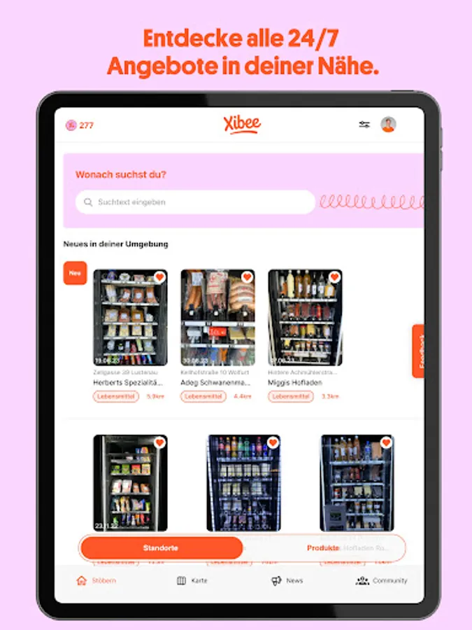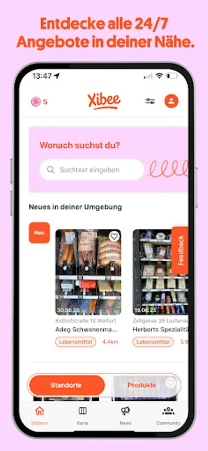 Xibee is your personal 24/7 guide! Find all vending machines and 24/7 self-service locations near you. You can use it to get errands done early in the morning or at night or to buy regional products. It doesn't matter whether it's food vending machines, parcel stations, farm shops or vending machines - at Xibee you can quickly and easily find offers around the clock in your area. Xibee makes you independent of time and makes your everyday life more flexible.